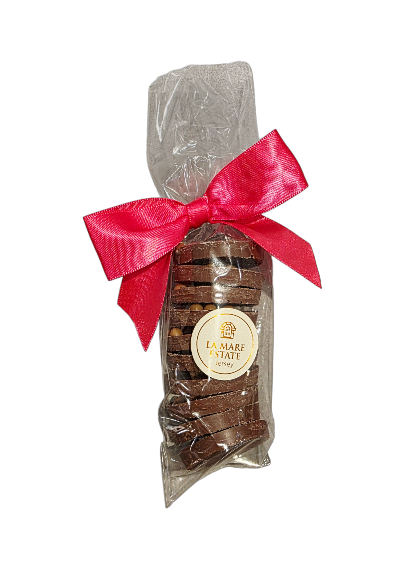 Gift-wrapped in cellophane and presented with a bow, these milk chocolate discs are infused with our homemade Jersey Salted Caramel.